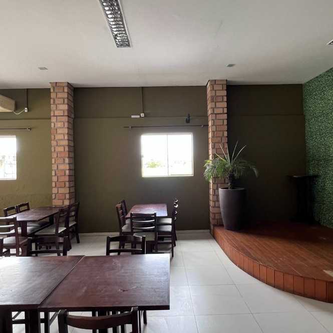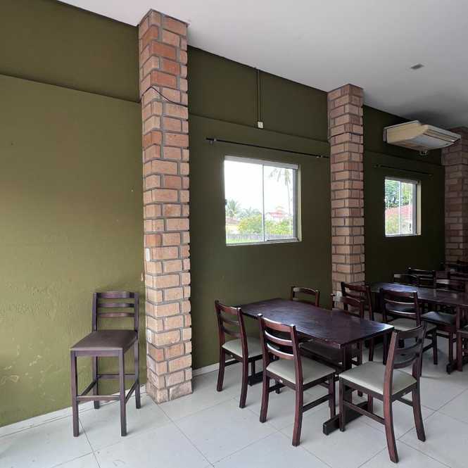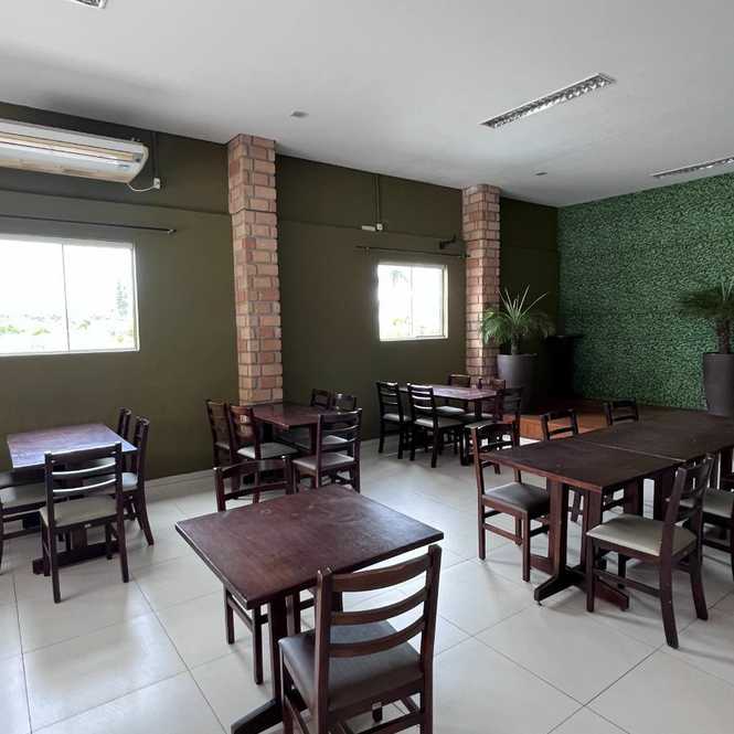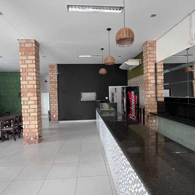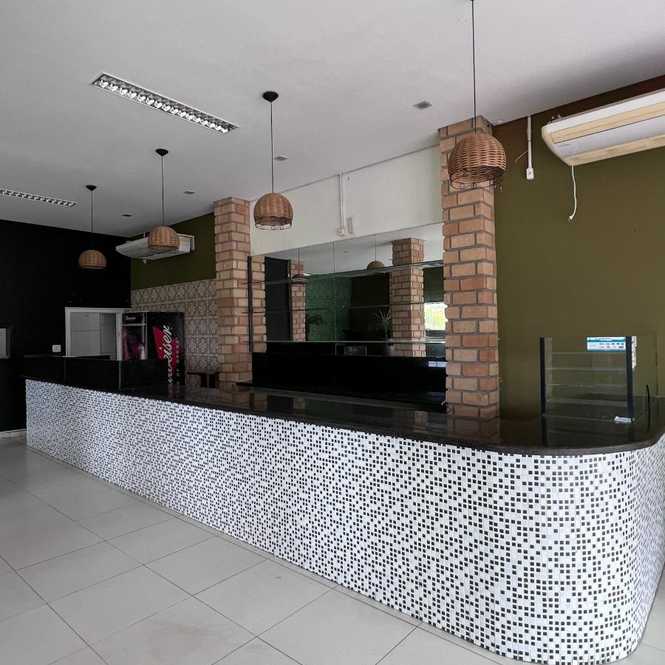 salão principal com balcão. Mesas e cadeiras. BWC feminino e masculino. cozinha e área de depósito.