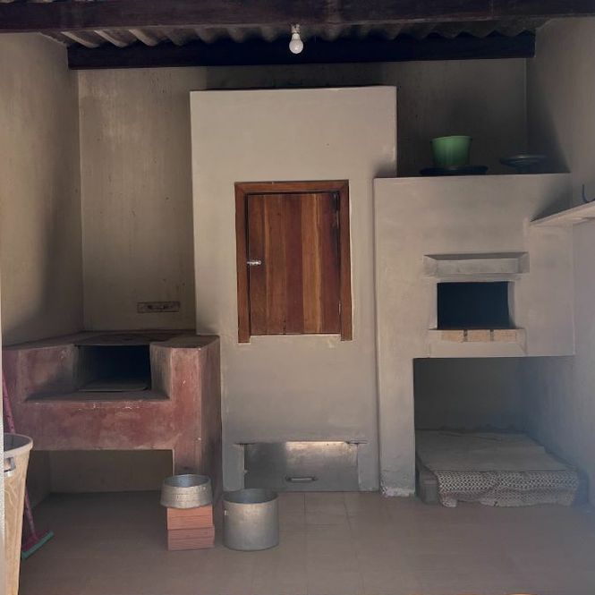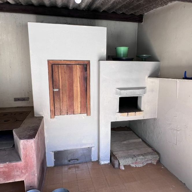 Pátio dos fundos com espaço gourmet completo: churrasqueira, forno e fogão a lenha.