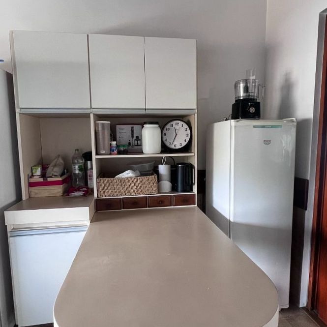 1 sala, 1 banheiro, armário e área de serviço com lavanderia extra.